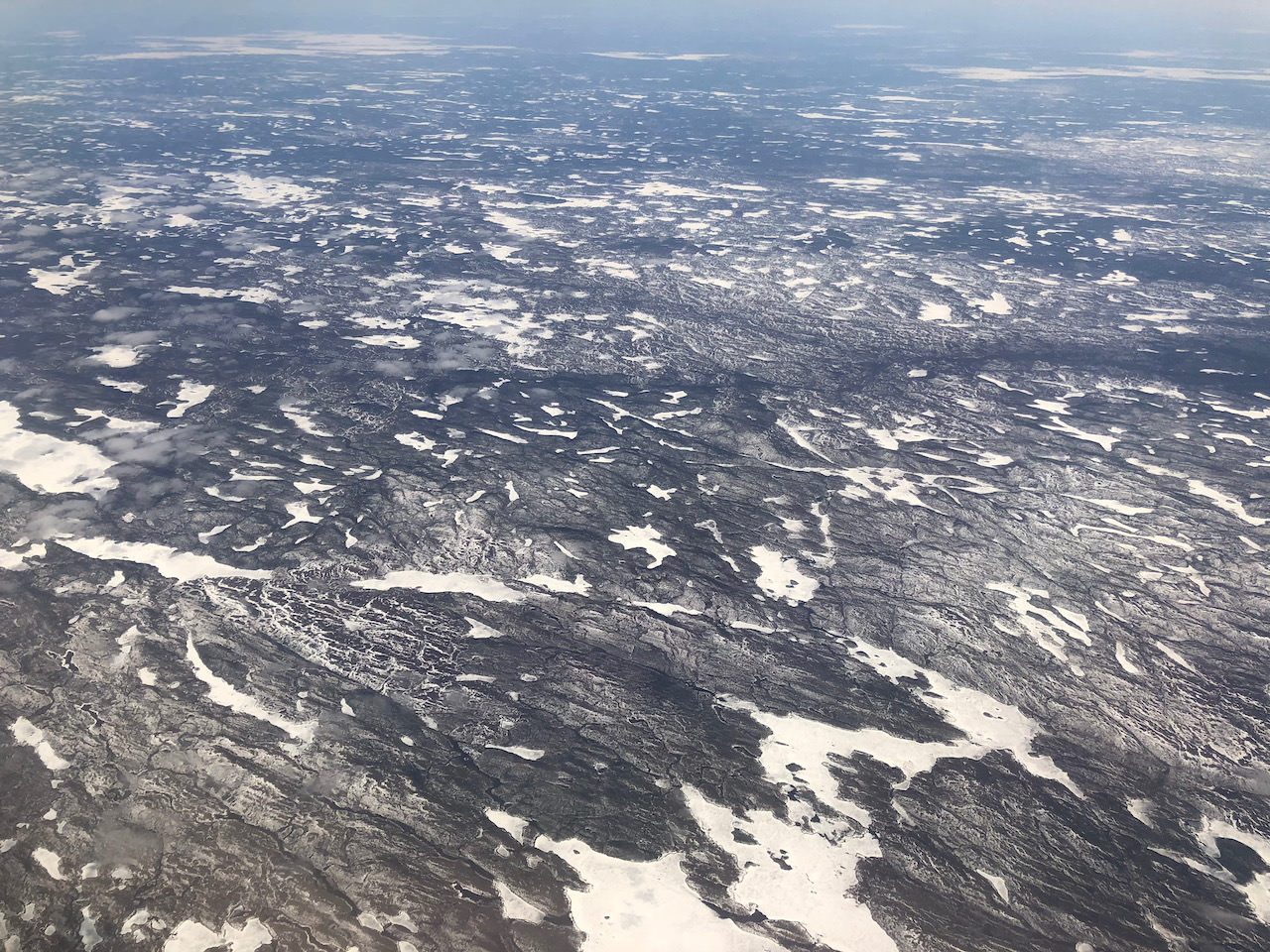 Flying over the ocean, which looks the same from all sides, pales in comparison to the fascinating landscapes over land. Flying over Canada, I was surprised to find Quebec and Ontario, usually green on Google Maps, mostly barren in June, one of the Northern Hemisphere’s warmest months. The terrain resembled the moon’s crater-filled surface, eventually giving way to roads without houses, only appearing as we neared the U.S. border.