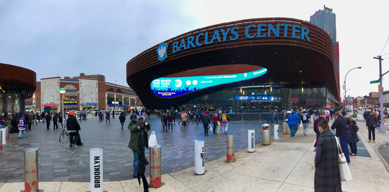 After checking into our hotel in Brooklyn, we headed to the Barclays Center for a hockey game. The arena is notably owned by Russian oligarch Mikhail Prokhorov, who also owns the Brooklyn Nets NBA team. Additionally, it serves as the temporary home for the New York Islanders until the Nassau Coliseum on Long Island is fully renovated and restored to its former glory.